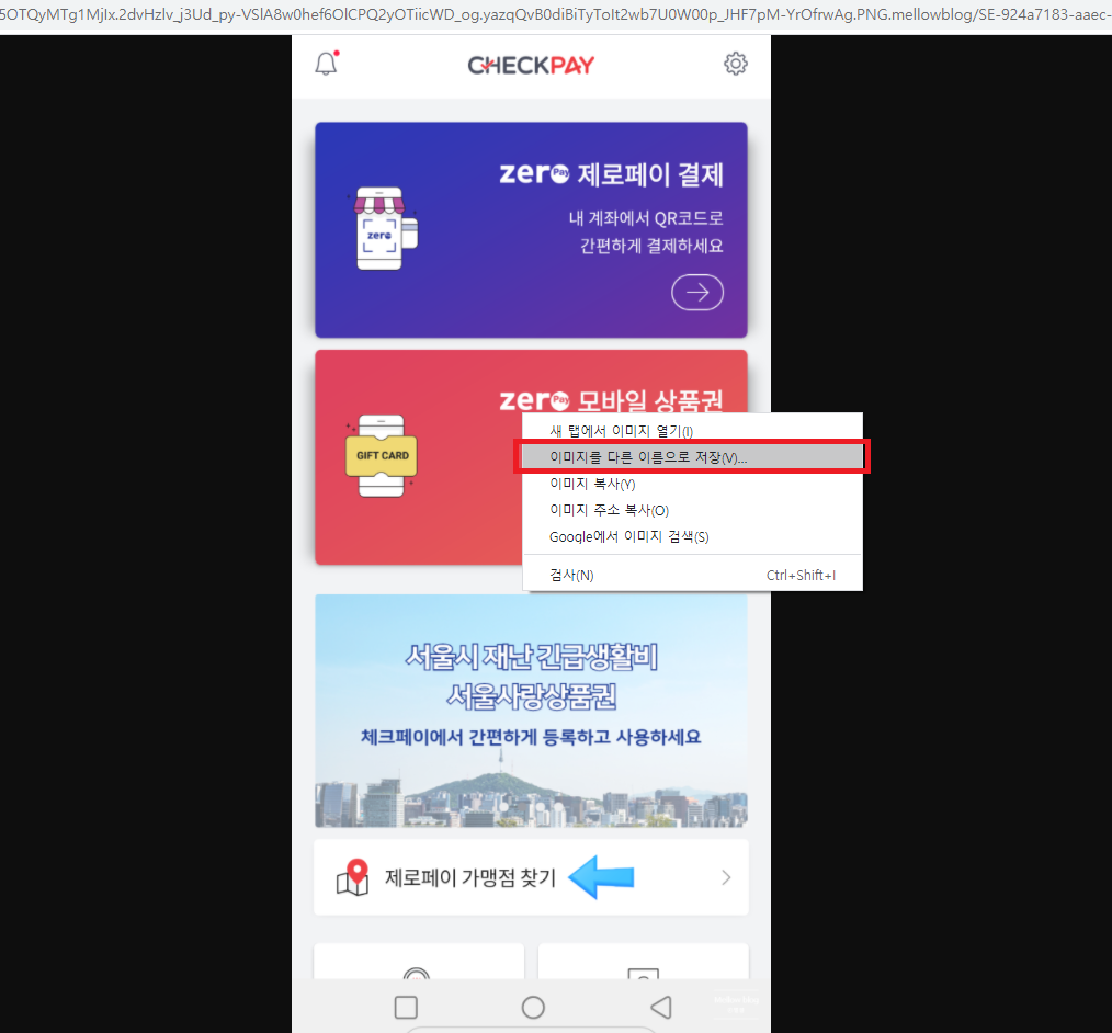 - 팝업 페이지를 오른쪽 마우스 클릭 후 "이미지를 다른 이름으로 저장"을 클릭하여 다운로드 및 저장하면 됩니다.