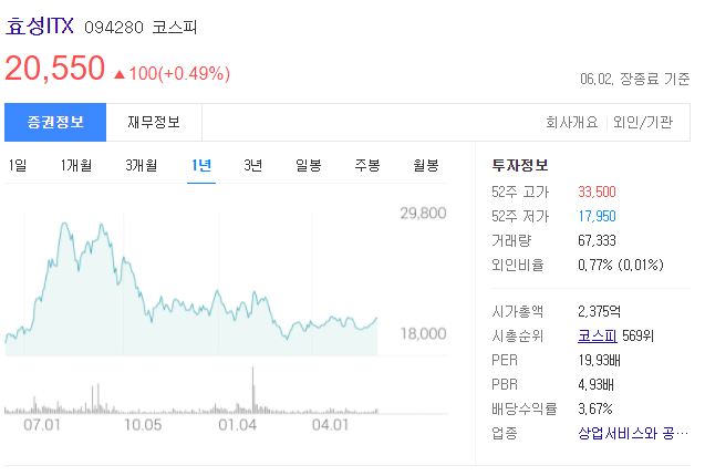 - 효성ITX : 분기배당 도입시기 2020년 1분기