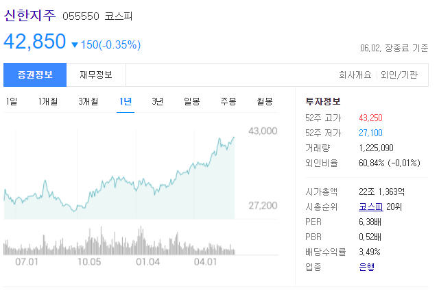 | 주주현황 | 국민연금공단(11.1%), 자사주(13.3) 블랙록(5.2%) |