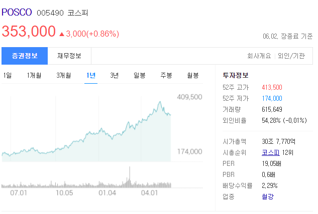 - 포스코 : 분기배당 도입시기 2016년 2분기