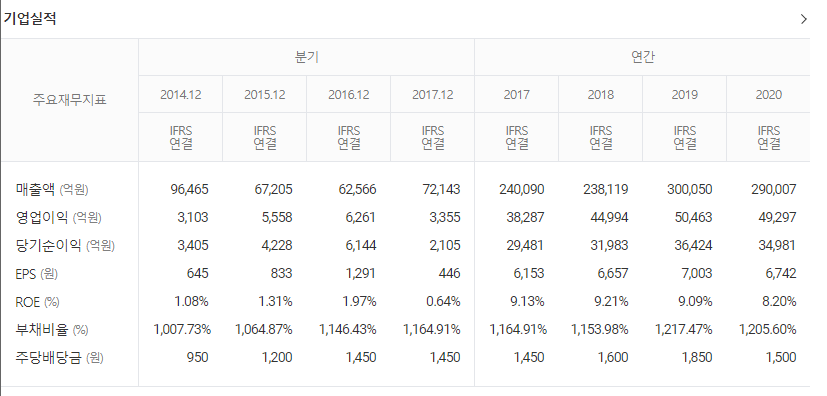 - 삼성전자 : 분기배당 도입시기 2017년 1분기