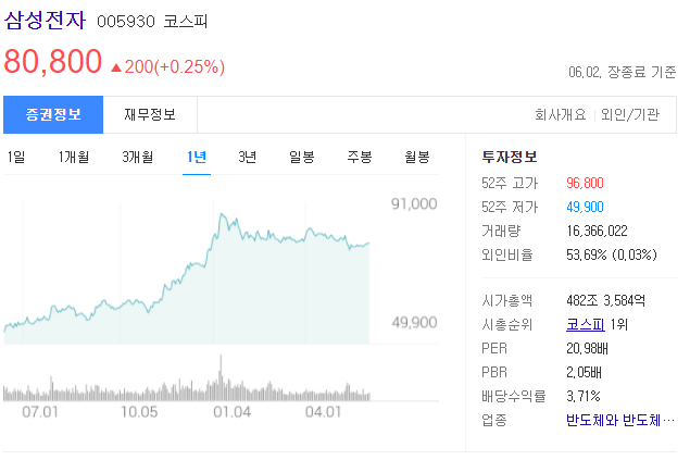 | 주주현황 | 삼성생명보험 16인(21.2%) 국민연금공단(9.7%), 블랙록(5.0%) |