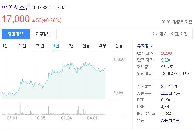 | 주주현황 | 한앤코오토홀딩스(50.5%) 한국타이어앤테크놀로지(19.5%) 국민연금공단(6.0%) |