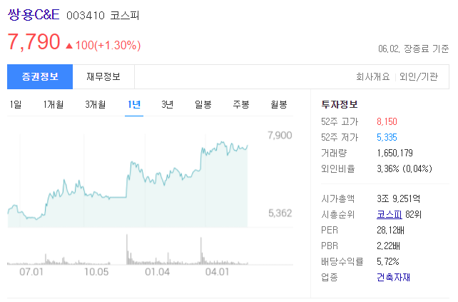 | 주주현황 | 한앤코시멘트홀딩스 11인(78.0%), 자사주(3.1%) |